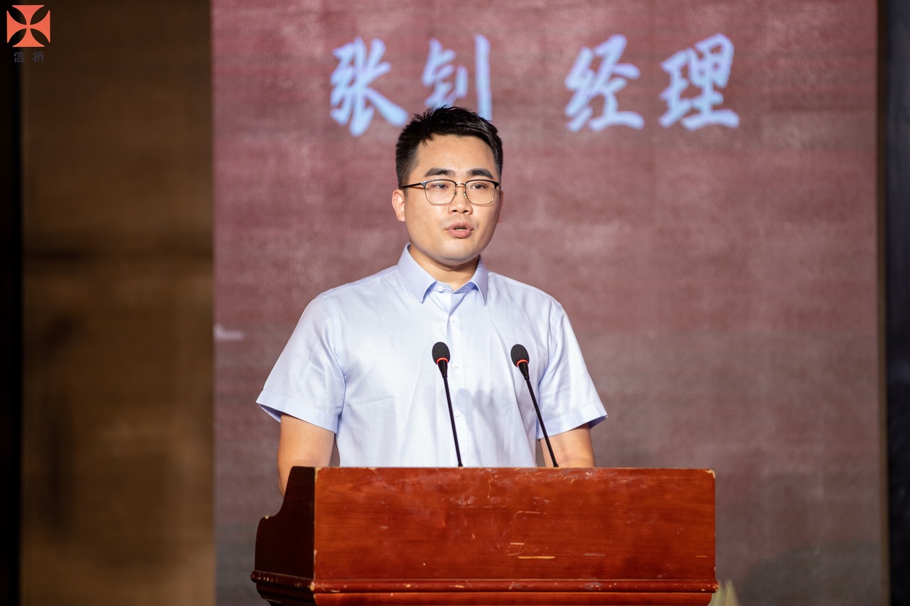 員工代表張釗講話,他代表了中青一代的信橋人,感慨了信橋二十幾年的發(fā)展,感謝信橋給予他的財富和能力。